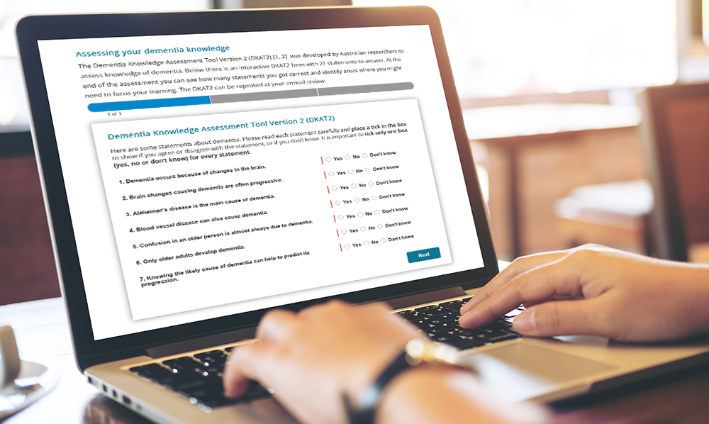 The Dementia Knowledge Assessment Tool Version 2 (DKAT2) [1, 2] was developed by Australian researchers to assess knowledge of dementia. Below there is an interactive DKAT2 form with 21 statements to answer. At the end of the assessment you can see how many statements you got correct and identify areas where you might need to focus your learning. The DKAT2 can be repeated at your annual review.
